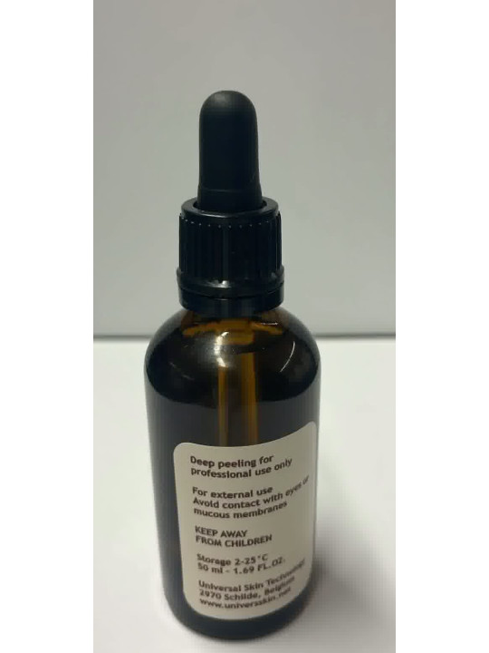 Application (pro): Thin, even layer (≈1.5–2.0 ml for full face). Very short contact time (30–120 s), stop at first uniform erythema; neutralize and rinse. 3–6 sessions every 3–4 weeks.